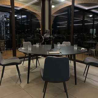 Il locale ristorante (lo stesso in cui si offre la colazione) è molto accogliente ed intimo con luci soffuse ed ampi tavoli rotondi di granito scuro.